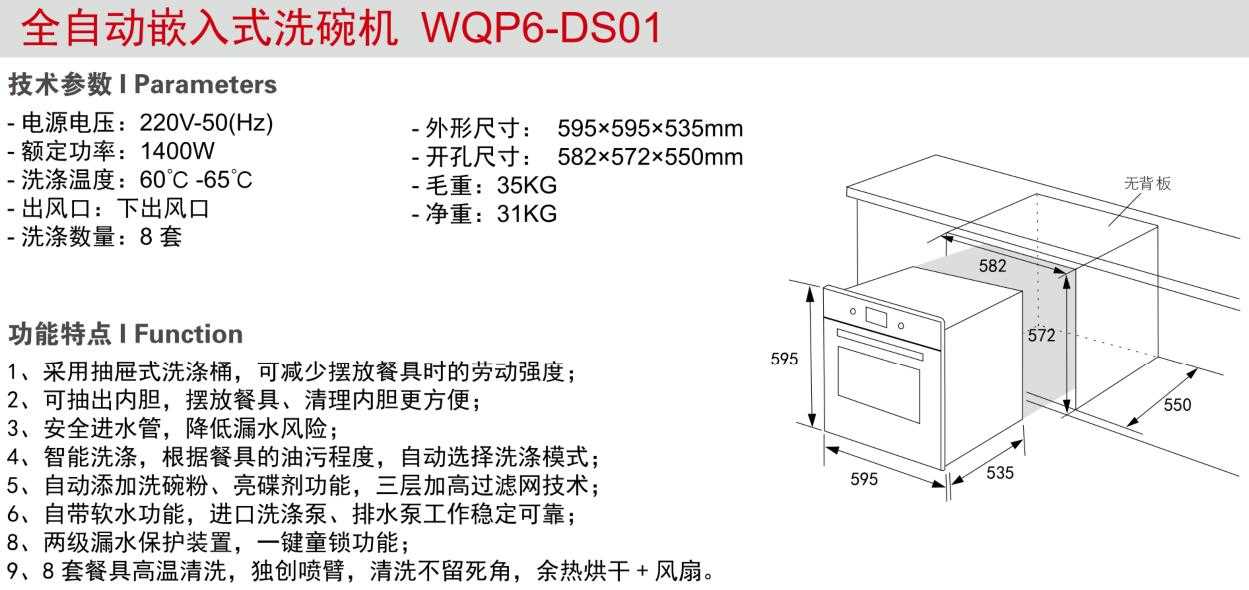 全自動(dòng)嵌入式洗碗機(jī)WQP6-DS01